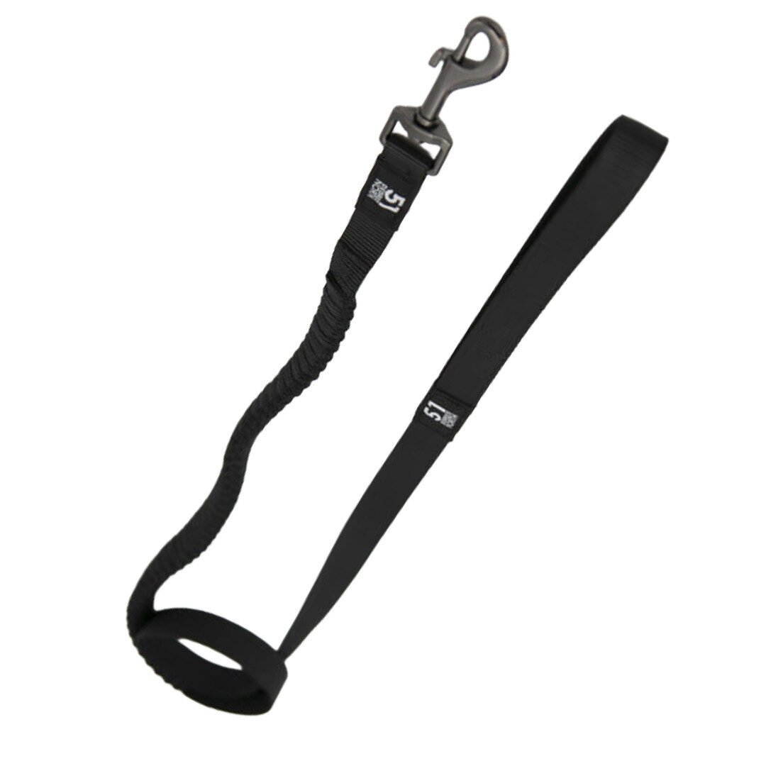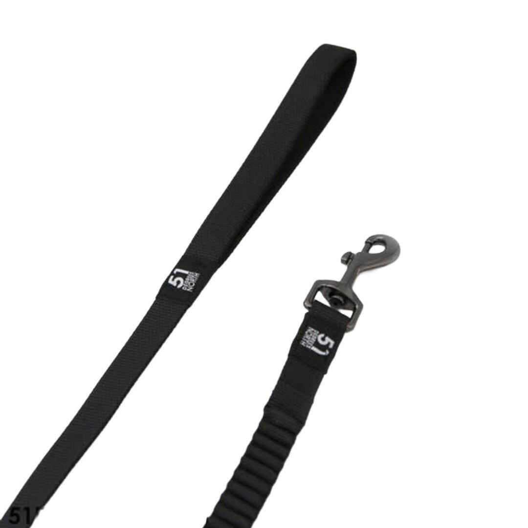 Elastisk hundesnor/føreline fra 51DN (51 Degrees North) i sort nylon med behageligt håndtag og flot sortforkromet karabinhage.
