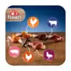kyllingebryst (35 %), andebryst (23 %), oksehud (12 %), svinehud (9 %), kyllingelever (8 %), glycerol, hvedemel, hvidløg.