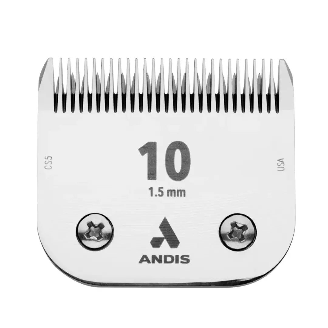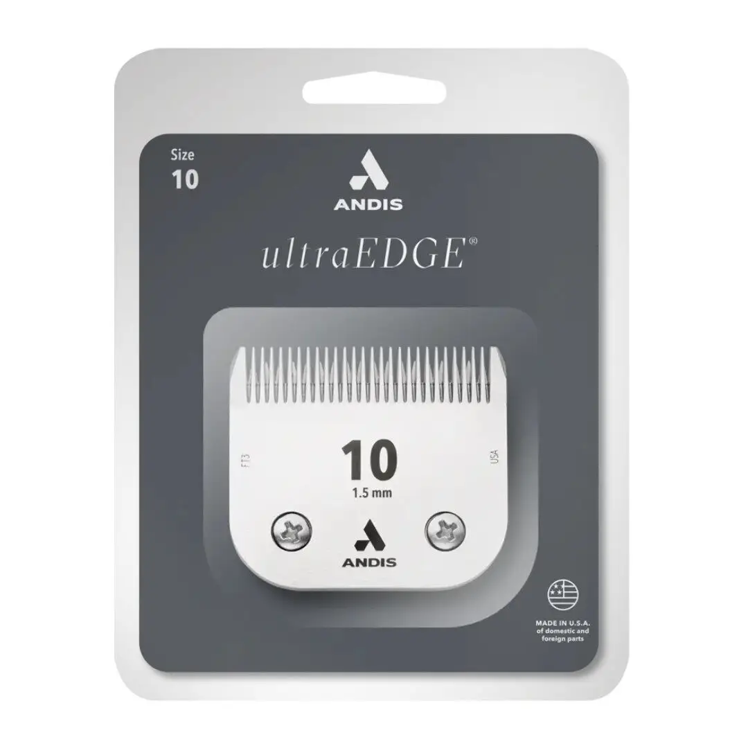 Andis UltraEdge 10 klipper 1,5 mm og bruges sammen med afstandskamme. Den korte længde sikrer præcision og stabilitet under kammen. Pelsen skal være udredt og fri for filt, ellers kan kammen sætte sig fast. Fremstillet i robust stål med chrome-finish for ekstra holdbarhed.