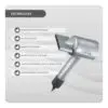 Filteret sidder i bunden af håndtaget og kan renses på få sekunder. Det gør vedligeholdelsen enkel og sikrer, at luftstrømmen altid fungerer optimalt. Mundstykket klikkes nemt af og kan udskiftes, hvis du ønsker at variere luftstrømmen under tørringen. Den robuste konstruktion og materialekvalitet betyder, at hårtørreren holder i mange år ved korrekt brug.