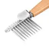 Kniven er udstyret med 9 bølgede metalblade, der skærer igennem filt og knuder fra rod til spids. De ekstra lange tænder giver adgang til de dybeste pelslag, hvilket gør redskabet perfekt til hunde med kraftig eller lang pels. I stedet for at rive i hårene brydes knuden stille og roligt op, så du kan rede pelsen igennem uden at skabe ubehag.