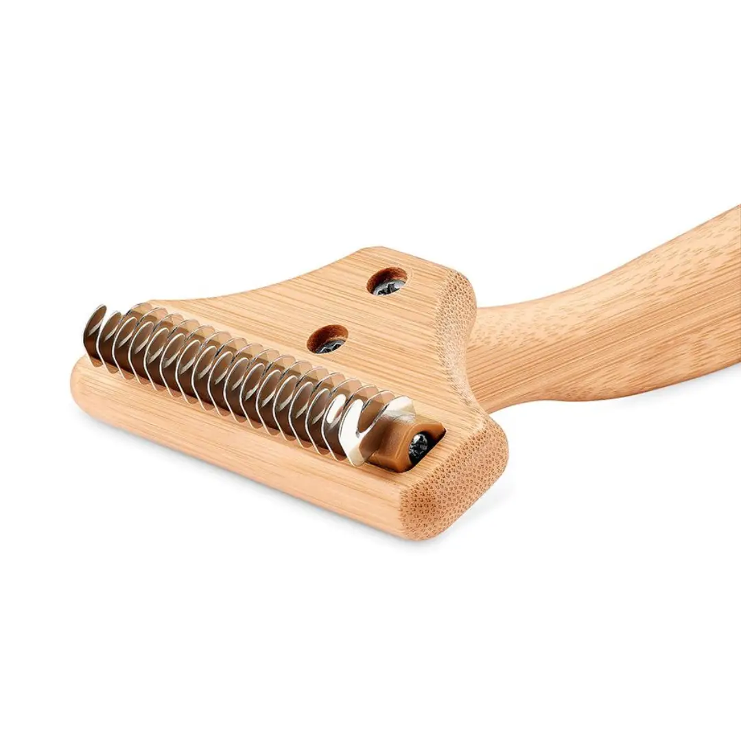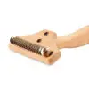 Artero Leo har et ergonomisk bambushåndtag med skridsikker gummibelægning, som giver et mere sikkert og behageligt greb. Det gør det lettere at arbejde roligt og kontrolleret gennem pelsen uden at spænde unødigt i hånden. Hos Ibens Hundehus ved vi, hvor meget det betyder, at værktøjet er rart at arbejde med, især når man står med en hund i kraftig fæld.