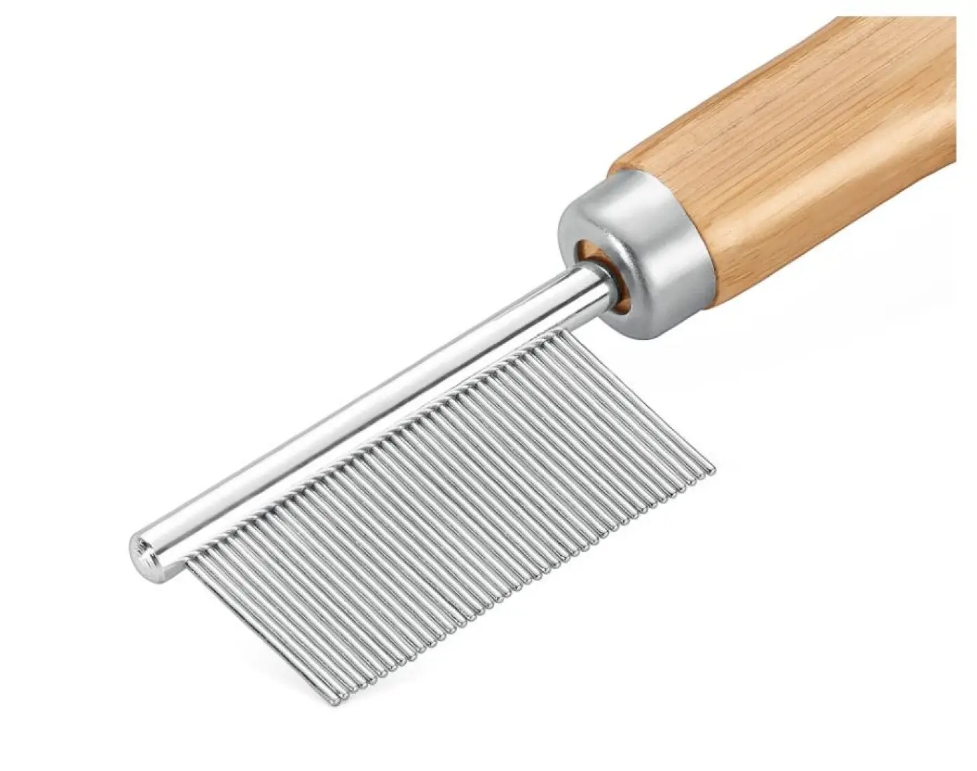 Med sit afrundede håndtag ligger kammen behageligt i hånden, så du har fuld kontrol under arbejdet. Det gør den til et trygt redskab, også for ejere der ellers kan være nervøse for at arbejde så tæt på hundens øjne.