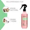 Balsammen bidrager til at gøre pelsen blødere og mere smidig, samtidig med at den tilfører glans og volumen. Den er velegnet til både kort og lang pels, men særligt hunde med længere pels kan have gavn af den ekstra kontrol og finish, som sprayen giver. Den unikke parfume efterlader en behagelig duft, der giver pelsen et frisk og velplejet udtryk.