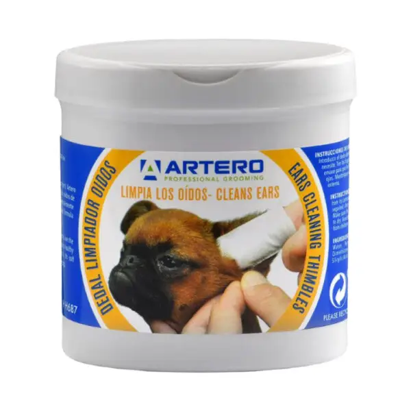 Artero Ørerens Fingertutter er en nem og hygiejnisk løsning til rengøring af det ydre øreområde hos hunde. Servietten trækkes over fingeren, så du får god kontrol og kan fjerne snavs og ørevoks med rolige, blide bevægelser. For en mere grundig pleje kan de med fordel bruges sammen med Artero Aurigel, som hjælper med at løsne ophobninger i øret, før området tørres rent. Det giver en mere behagelig rutine og et synligt renere resultat i den daglige ørepleje for din hund.