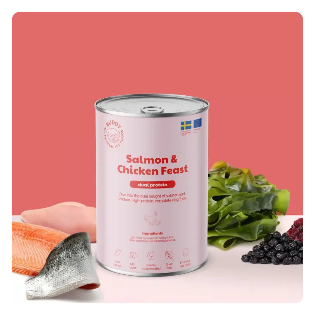 Buddy Salmon & Chicken Feast som kornfrit og balanceret vådfoder