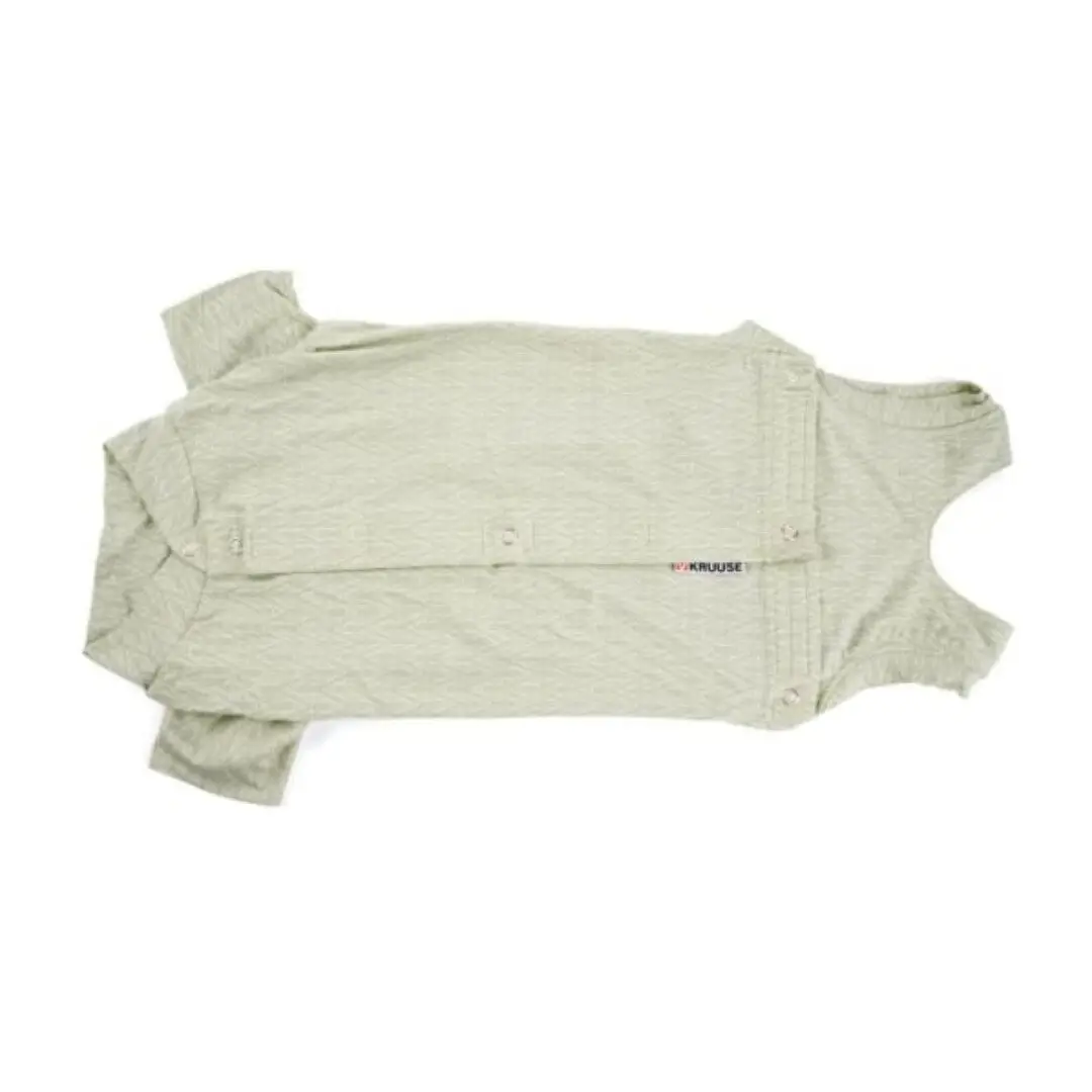 Blød og fleksibel bodystocking til hunde, der har brug for beskyttelse efter operation eller ved hudlidelser. Buster Body Suit er lavet af åndbart bambusstof, som er fugttransporterende, antibakterielt og velegnet til følsom hud. Den giver fuld bevægelsesfrihed, har knapper og burrebånd for nem påsætning samt dobbelt stof under maven til sugende indlæg. Bagsiden kan åbnes helt for mere stressfri håndtering. Der måles fra halsbånd til halerod, mens hunden står op.