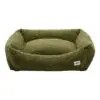 Det særlige ved denne model er kombinationen af det rolige, stilrene udtryk og den meget bløde fleece-/plysoverflade. Den grønne farve giver sengen et roligt og varmt look, som fungerer flot i mange hjem, og den lækre overflade gør den ekstra indbydende for hunde, der elsker at putte sig. Det er den type hundeseng, man gerne lader stå fremme, fordi den ser pæn ud og føles som en naturlig del af indretningen i stedet for bare endnu et stykke hundeudstyr.