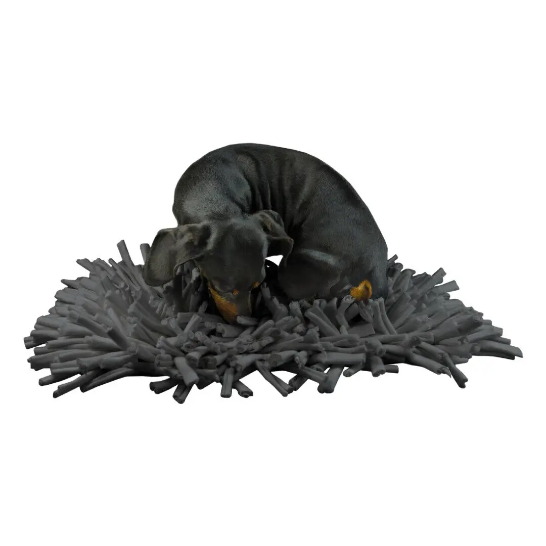 Snusetæppet fungerer både som snusemåtte og aktiveringslegetøj. Hunden skal bruge lugtesansen til at finde foder eller godbidder, der gemmes i måttens lommer og folder. Denne form for mental stimulering giver ro og tilfredshed, fordi snusning aktiverer hundens naturlige instinkter. Det er en enkel måde at tilbyde daglig aktivering på – ideelt til både hvalpe og voksne hunde.