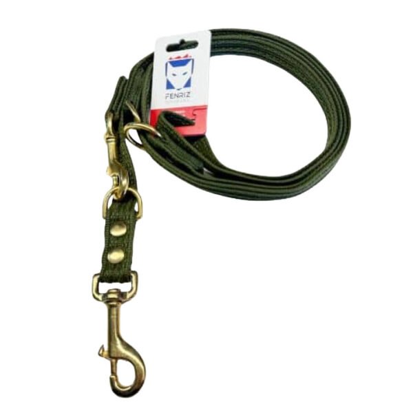 Fenriz Dressurline Grøn er udviklet til hundeejere, der ønsker en robust, behagelig og praktisk line i et stilrent udtryk. Den dybe jagtgrønne farve giver linen et naturligt look, mens den kraftige webbing sørger for en stabil fornemmelse i hånden. Messingdetaljerne tilfører linjen et klassisk og tidløst udtryk, og den solide konstruktion gør den velegnet til både hverdagsbrug, træning og turene i naturen.