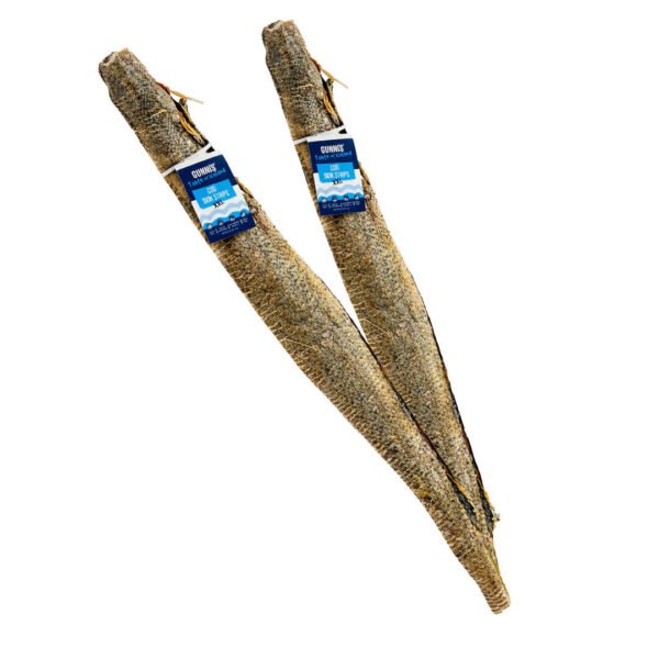 Gunnis Tyggestang XL Foldet Torskeskind 35 cm – stor, sprød fiskesnack med masser af tyggeværdi