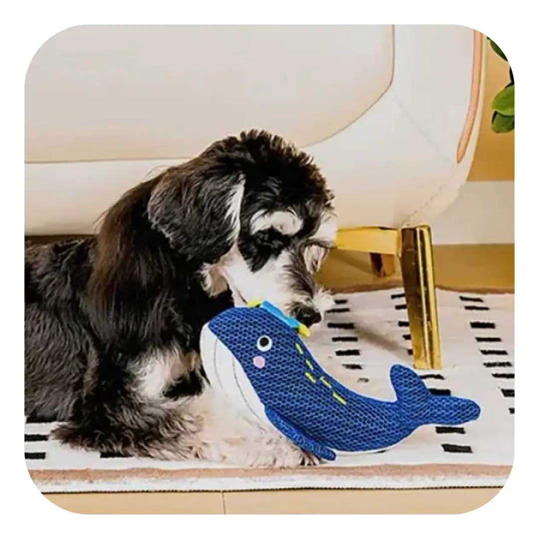 HugSmart Fuzzy Friends Hvalen Hvalborg er et robust legetøj, lavet af slidstærkt sandwich mesh-materiale, der både holder til leg og hjælper med at rense din hunds tænder. Med en indbygget squeaker, der fanger hundens opmærksomhed, tilbyder Hvalborg timevis af sjov og stimulering. Perfekt til både hygge og aktiv leg.