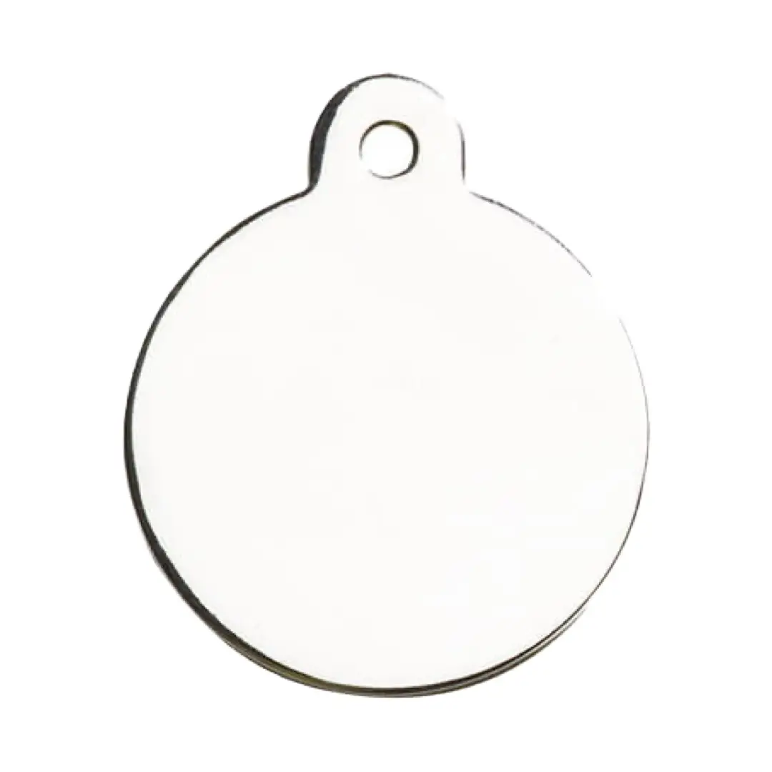 Flot og stilfuldt kvalitets hundetegn fra iMarc. Rundt navneskilt med dannebrogsmotiv på den ene side, og sølvfarvet på den anden side. Perfekt til hunde der rejser udenlands og/eller går på udstillinger og jagt rundt om i verdenen.