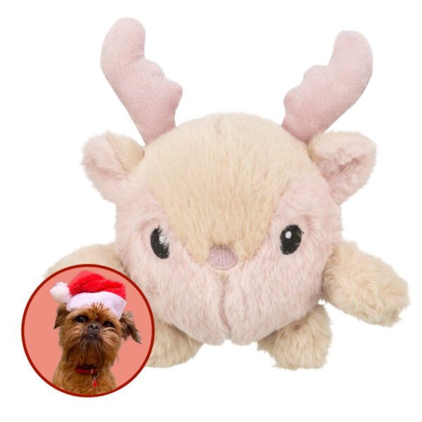 Dette søde rensdyr i rund plysform er en uundværlig del af julestemningen for enhver hundeejer. Med sit bløde ydre, nuttede udtryk og indbyggede piv er den skabt til at bringe glæde og aktivitet ind i hjemmet. Den bløde, runde form gør den nem for hunden at bære rundt, kaste op i luften eller putte sig med – alt sammen med et smil på snuden.