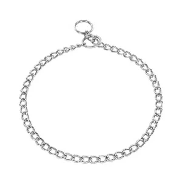 Forkromet kædehalsbånd med små led, velegnet til kontrolleret træning af hunde. De små led sikrer jævn bevægelse, og halsbåndet løsner sig automatisk, når trækket ophører. Fremstillet i slidstærkt, rustbestandigt stål. Skal anvendes med omtanke og aldrig som straf – egnet til træning under vejledning. Ikke til nødvendigvis daglig brug. Et redskab til dig, der ønsker at forbedre kontakt og samarbejde med din hund gennem fair og tydelig kommunikation.