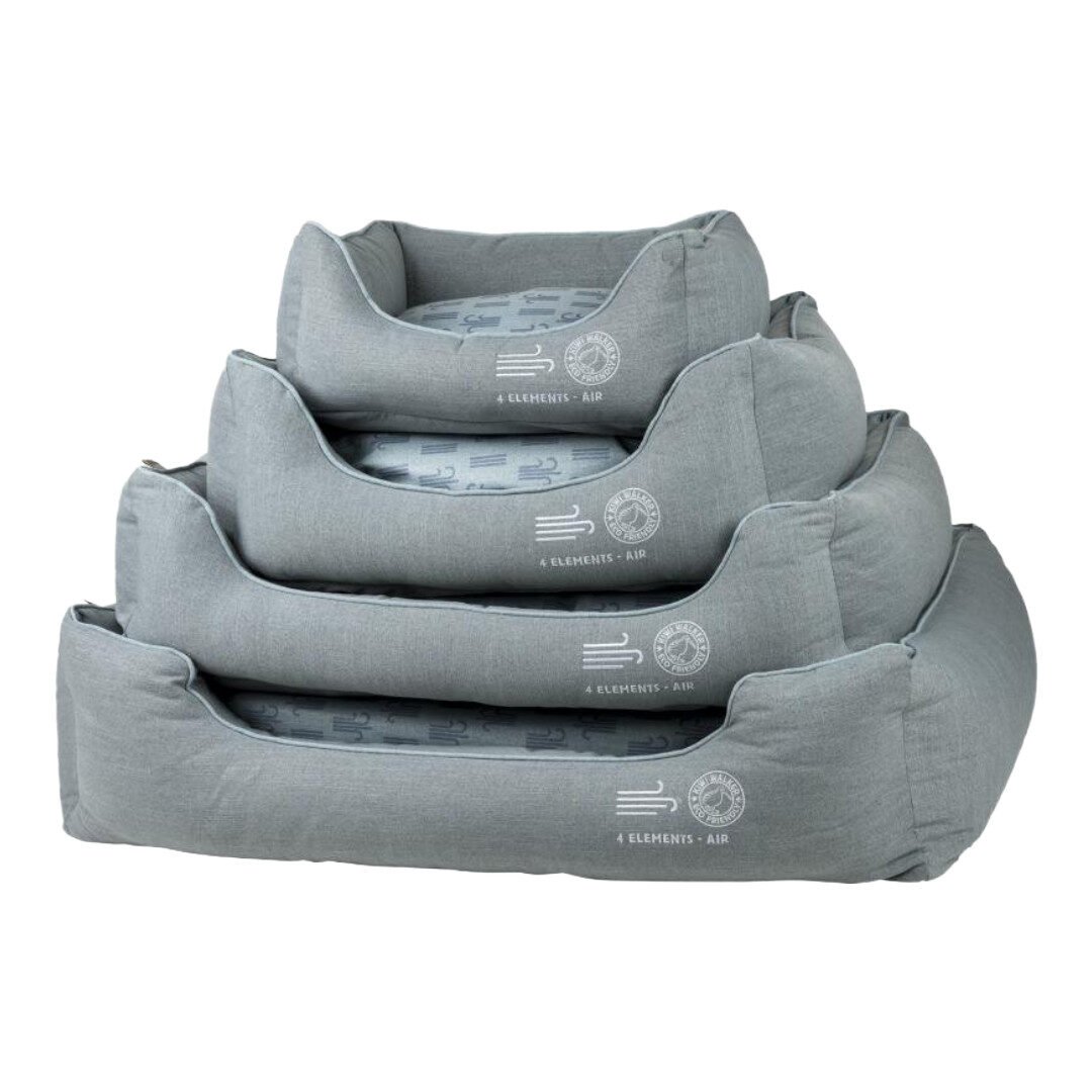 Hvert materiale og designvalg i 4 Elements Air er nøje gennemtænkt. Den glatte overflade i genanvendt polyester er behagelig mod pelsen, mens fyldet af genbrugsfiber former sig efter hundens krop. Lynlåsene i aluminium giver sengen et robust og moderne finish. Den blå farve symboliserer frihed og friskhed – som et pust af klar luft i dit hjem.