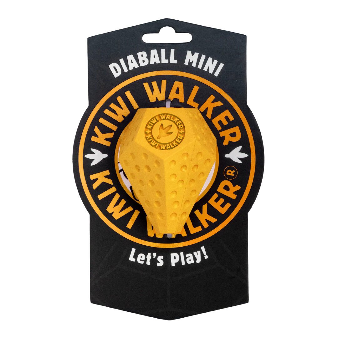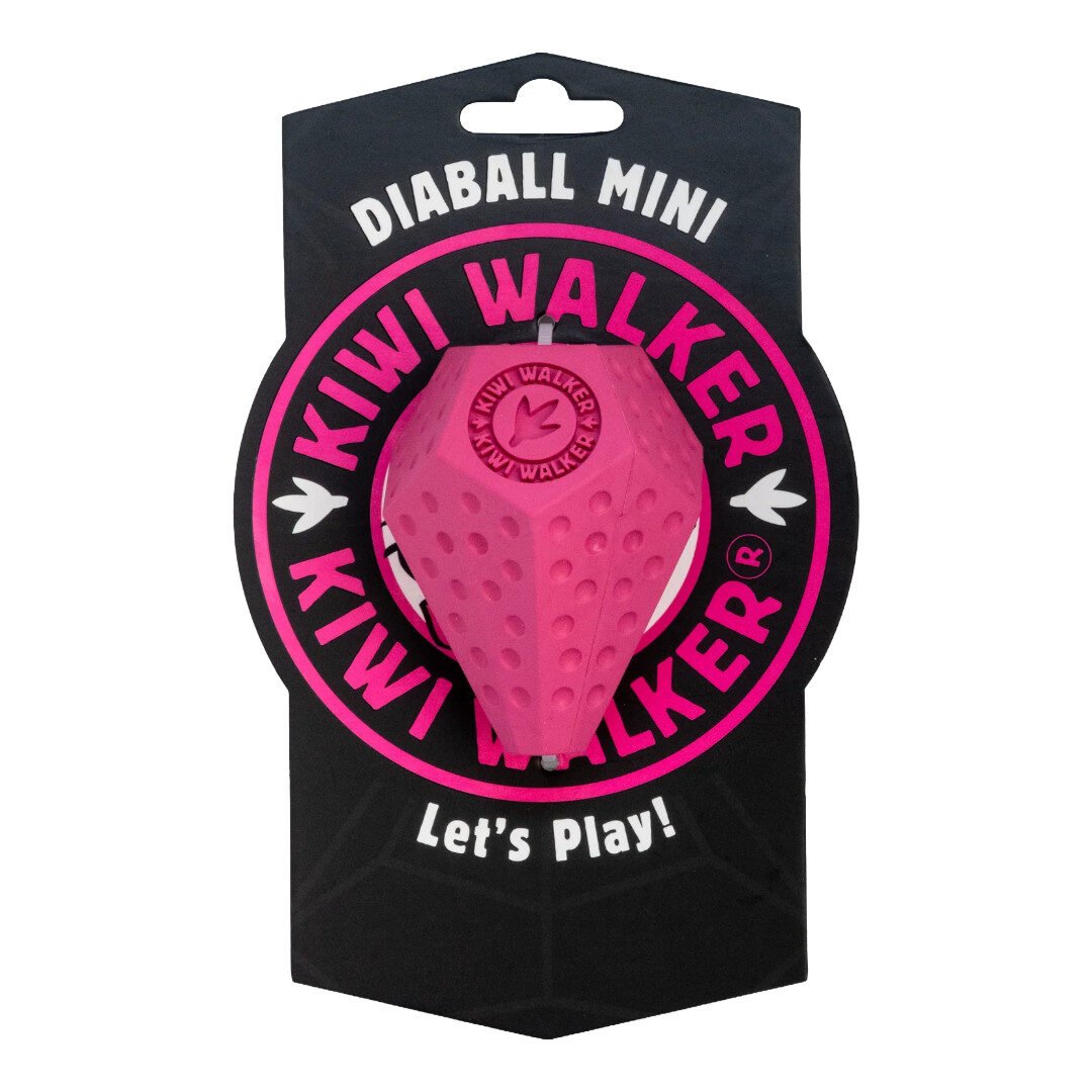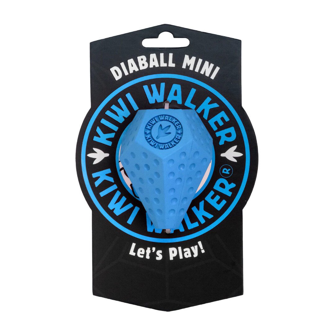 Kiwi Walker Diaball Mini er et sjovt og udfordrende aktiveringslegetøj til små og mellemstore hunde. Den diamantformede bold hopper uforudsigeligt og holder din hund fokuseret, mens hullerne kan fyldes med godbidder for ekstra motivation. Lavet af fleksibelt, slidstærkt gummi, der tåler daglig leg og er nemt at rengøre. Fås i flere former og fire friske farver: blå, orange, pink og grøn – perfekt til leg både inde og ude.