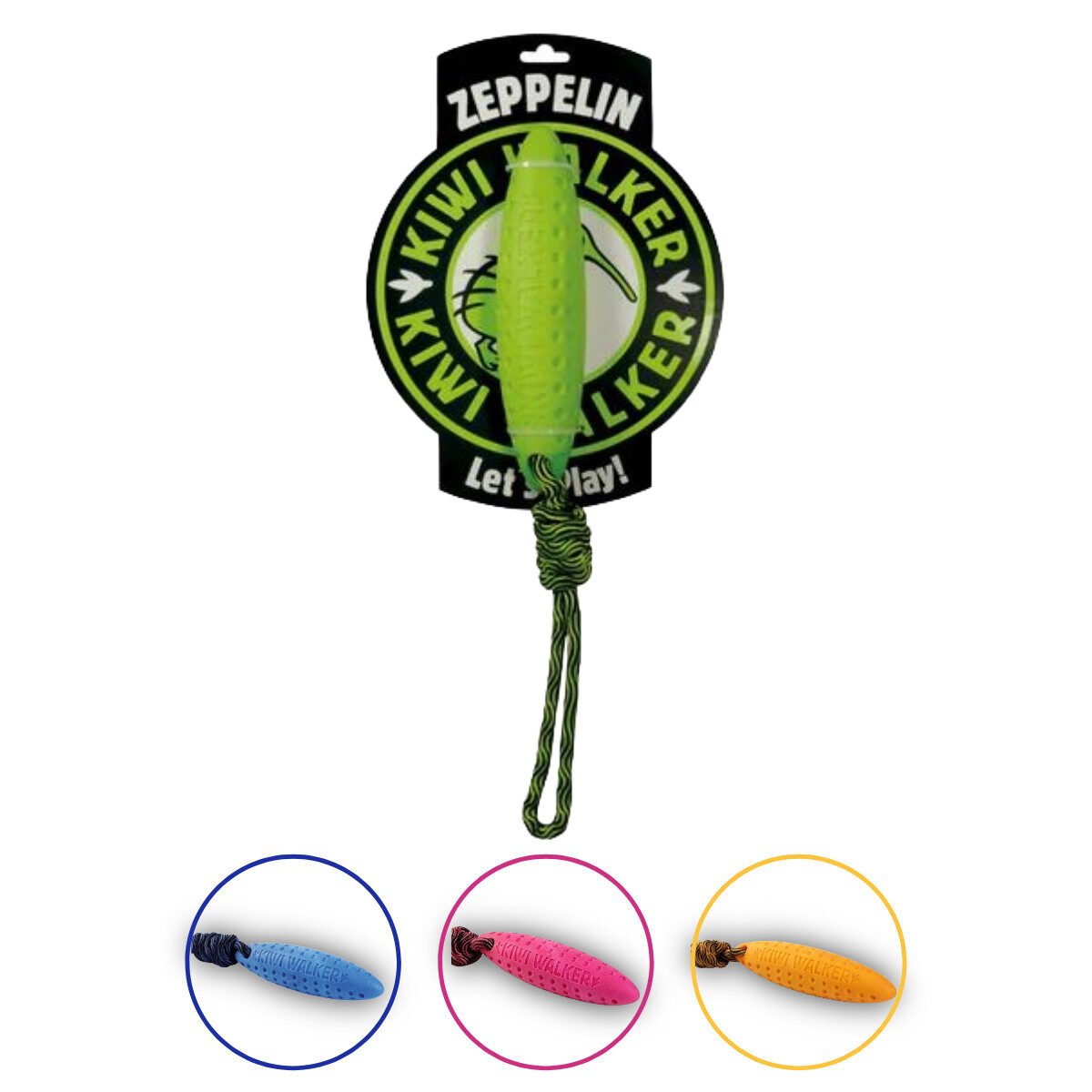 Kiwi Walker Zeppelin Maxi er et robust legetøj til mellemstore og store hunde. Fremstillet af slidstærkt TPR-skum, der både flyder i vand og hopper på land. Den stærke nylonsnor giver dig fuld kontrol ved kast og trækkelege, og det bløde skum er skånsomt mod hundens tænder. Kan maskinvaskes ved 30 °C og bruges både ved stranden, i haven og i svømmehallen. Fås i fire farver: blå, orange, pink og grøn.
