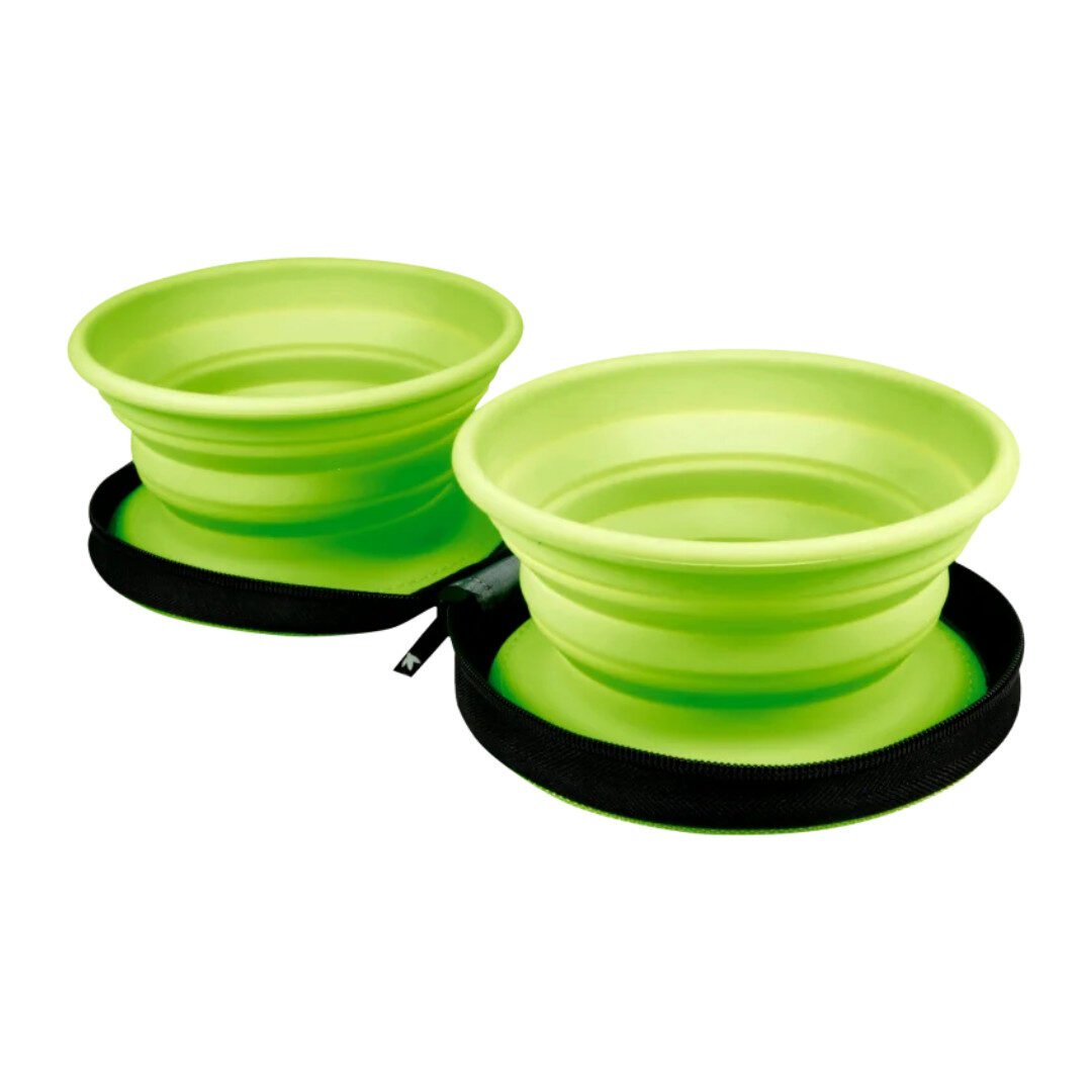 Kiwi Walker Smart Dobbelt Rejseskåle Sæt Grøn – praktisk mad- og vandskål til turen