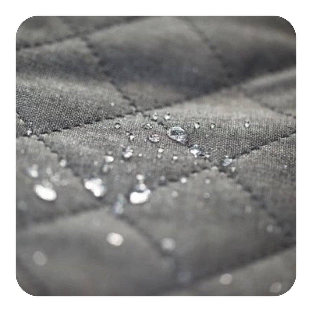 Det slidstærke materiale består af en tæt bomuldsblanding med vandafvisende overflade. Stoffet modstår fugt, mudder og hundehår, men er samtidig blødt og behageligt for hunden at ligge på. Den polstrede underside dæmper vibrationer under kørslen, så hunden kan slappe af og føle sig mere tryg på længere ture.