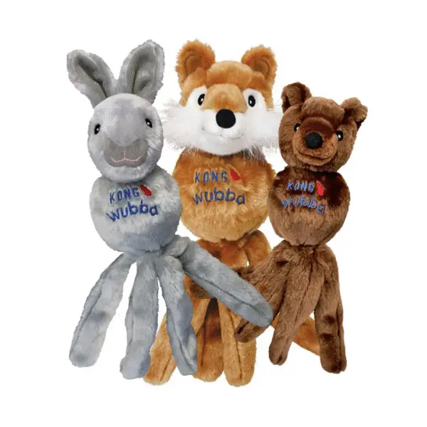 KONG Wubba Friends kombinerer blødt plys med ekstra holdbarhed og har en stor squeaker i maven, der gør legen ekstra sjov. De lange flagrende ben er perfekte til at ruske og kaste med, og legetøjet fås i tre søde modeller – bjørn, kanin og ræv. KONG er kendt for sin høje kvalitet og mission om at styrke båndet mellem hund og ejer gennem sjove og holdbare produkter.