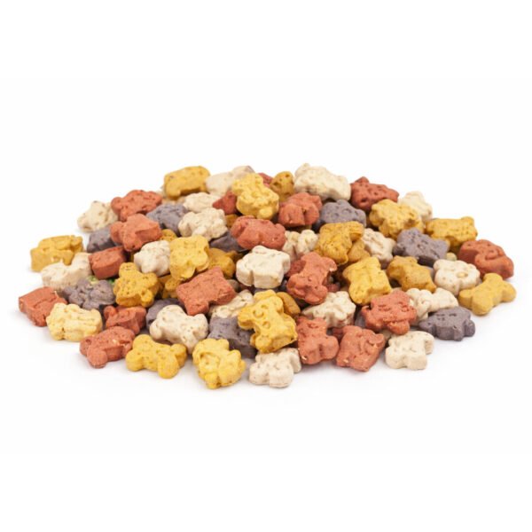 Små kiks formet som små dyr i forskellige farver. Kiksene har en dejlig vaniljeduft. Pakket i kræmmerhus med ca 250 g.