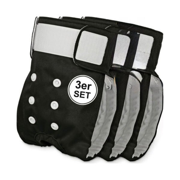 Blød og behageligt løbetidsbind til tæver i løbetid. Vaskes blot i vaskemaskinen efter brug og tørres, så kan de bruges igen og igen. Disse løbetidsbukser er forsynet med et blødt superabsorberende inderfoer. Slut med bøvlede indlæg osv. 3 stk/pakke.