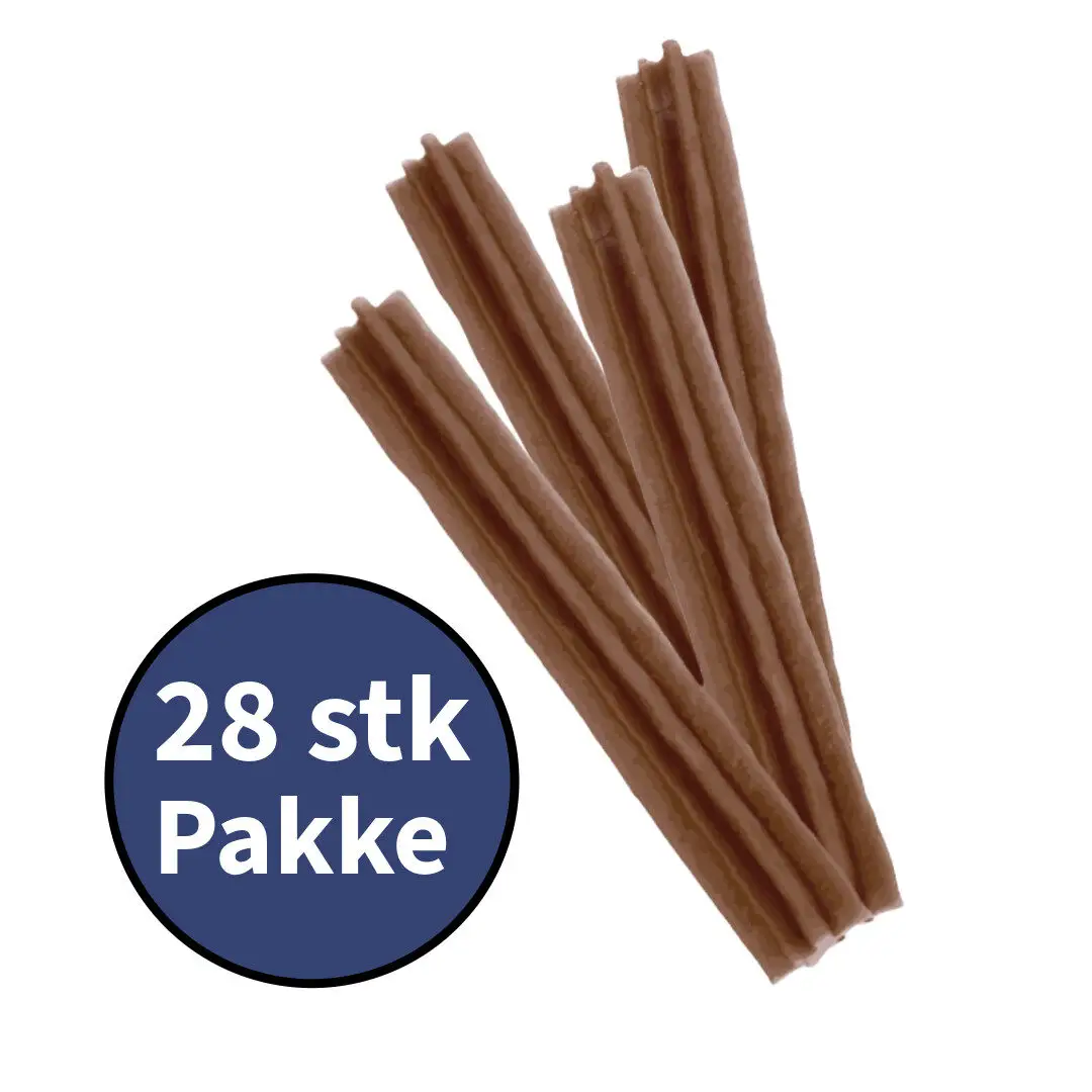 Vi anbefaler denne 28-pak til ejere af store hunde, der ønsker en praktisk og velsmagende løsning til daglig tandpleje. Her får du et funktionelt tyggeben, der ikke bare aktiverer din hund, men samtidig bidrager til dens sundhed – og det hele leveres i en bekvem månedsforsyning.