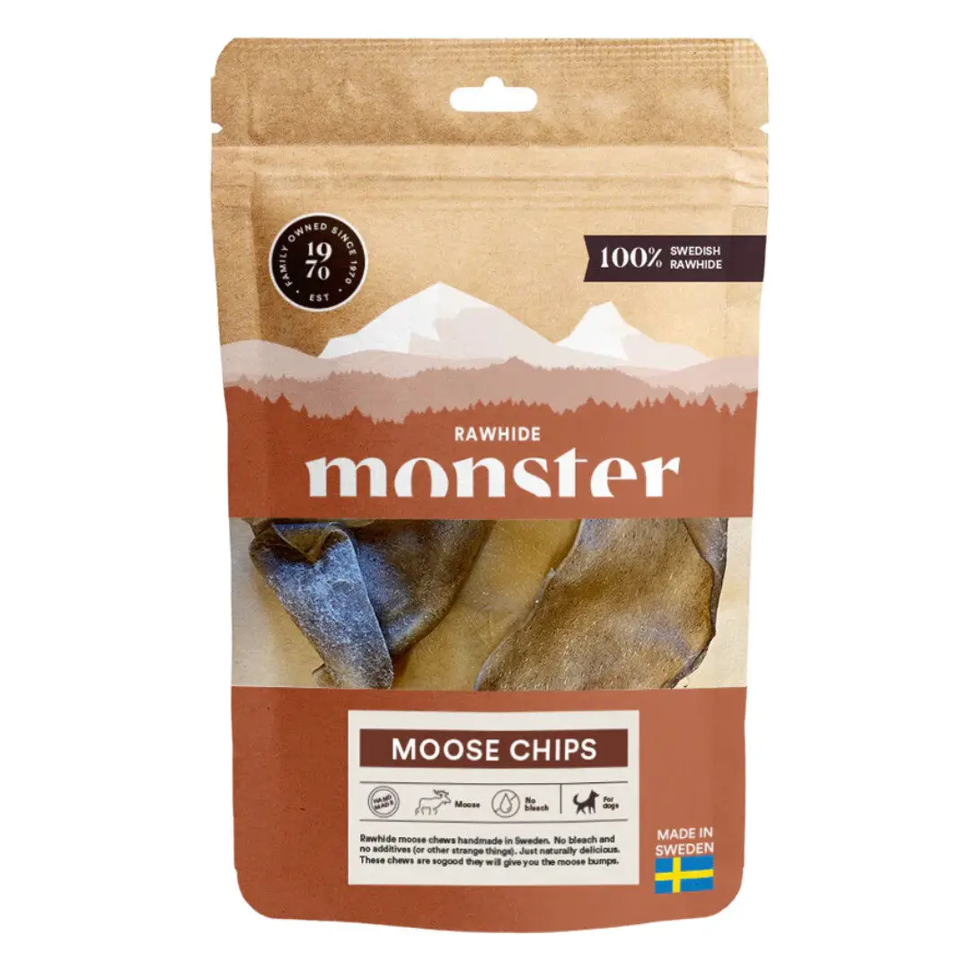 Monster Moose Chips – Naturlige, tyggevenlige elgchips til kvalitetsbevidste hunde