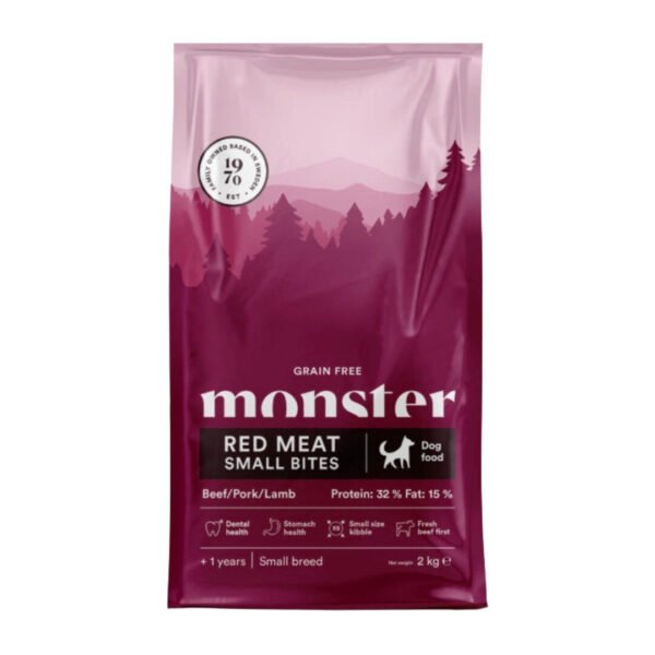 Monster er et familieejet svensk firma, hvor ingredienserne er nøje udvalgte og af høj kvalitet. Deres opskrifter er udviklet med fokus på naturligt indhold kombineret med sundhedsmæssige fordele, så hunden får et måltid, der både smager godt og bidrager til trivsel i hverdagen. I Monster-foder er der tænkt på helheden: stærke muskler, god mavehygiejne, tandstenskontrol samt sund hud og pels. Det gør Monster Red Meat Adult Small Bites til et gennemført valg til små voksne hunde, der fortjener et smagfuldt fuldfoder med høj standard.