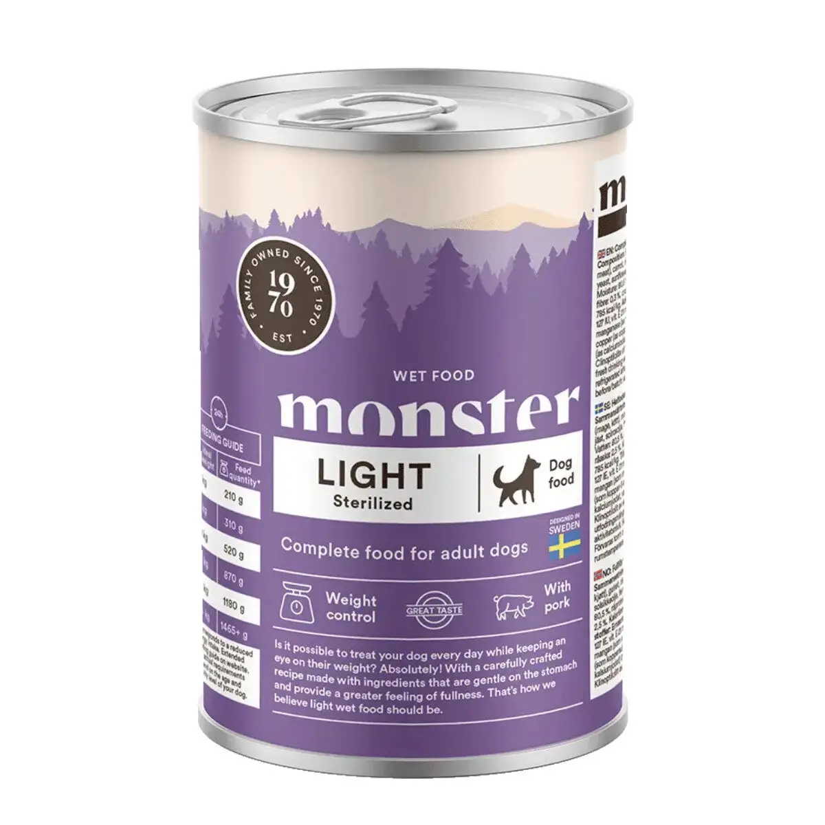 Monster er et familieejet svensk brand, som udvikler foder med fokus på funktion, kvalitet og ærlige ingredienser. De ved, at hver hund er unik – og at det rigtige foder gør en verden til forskel. Monster Light er skabt til netop de hunde, der skal have lidt ekstra støtte til vægten, men stadig fortjener et måltid med smag og glæde.