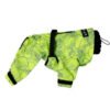 Dragten er med ben, for at hunden beskyttes yderligere. Benene strammes til med en velcrostrop, så hunden ikke kan trække poterne op i dragten. For at sikre den gode komfort, at der en blød manchet under velcroen, så dragten kan glide en smule på benet for god bevægelighed.