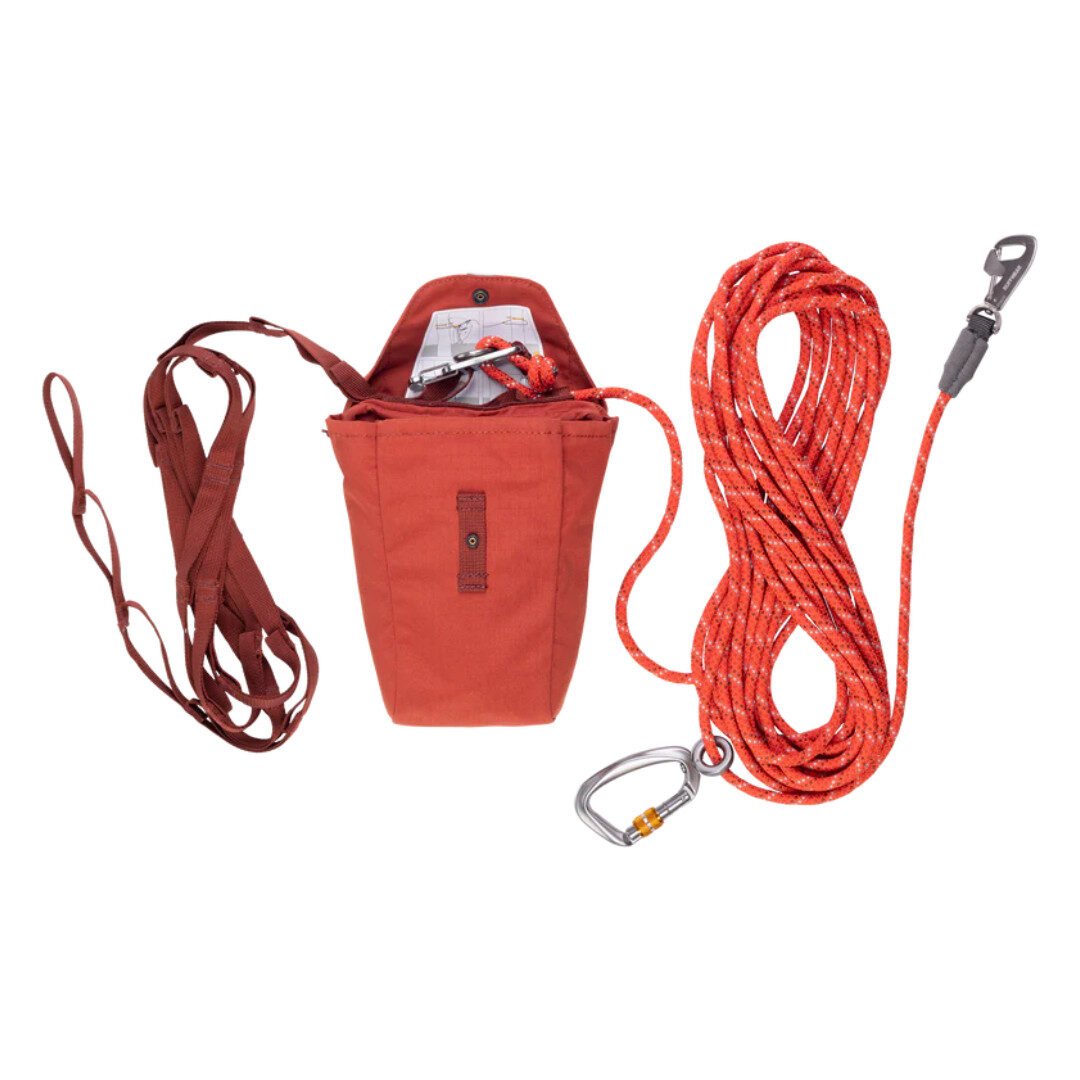 Knot-a-Hitch er et smart system til camping og udendørsture, hvor hunden får frihed til at bevæge sig, mens den stadig er sikkert i snor. Linen glider langs et stærkt kernmantel-reb, som spændes op mellem to træer eller fastgøres som enkelt løbeline. Systemet er let at sætte op, og den robuste opbevaringspose gør det nemt at have med på turen. Linen giver hunden mulighed for at skifte liggeplads, snuse og følge familien rundt på pladsen, uden at du skal holde linen i hånden.