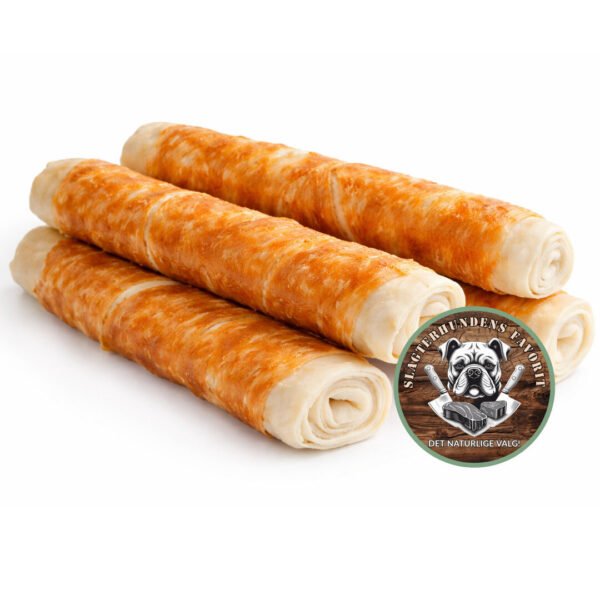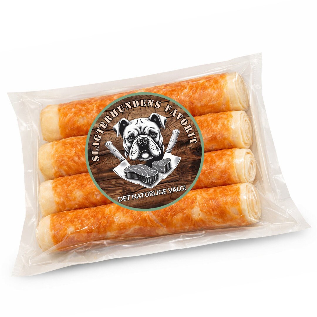 Slagterhundens Favorit – 4 stk. Retrieverruller med Kylling og Oksehud (23 cm)