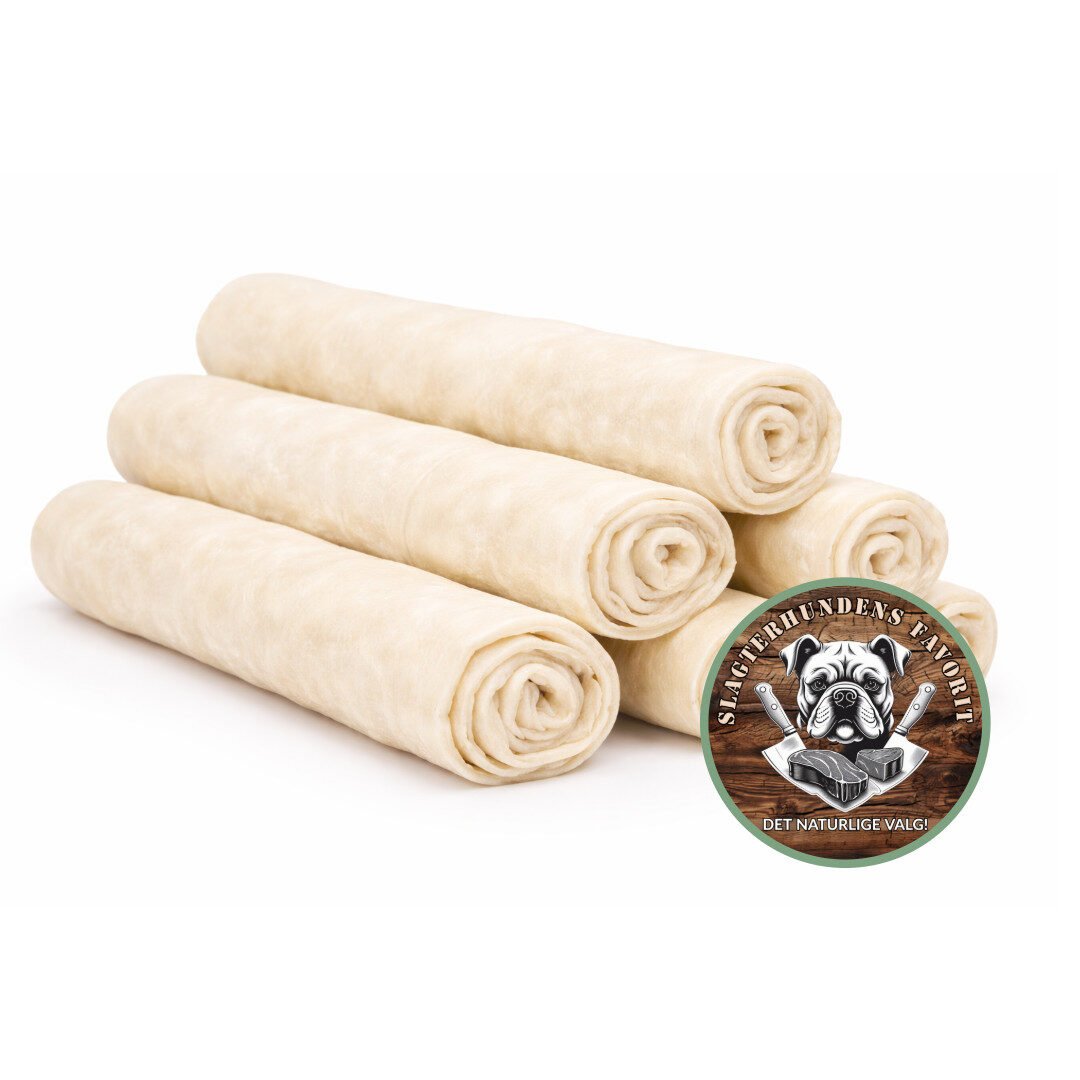 Slagterhundens Favorit Tyggeben – Hvid Retrieverrulle af Oksehud (5 stk.)