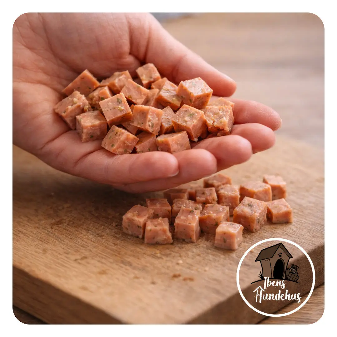 - Praktisk anvendelse: Perfekt som træningsgodbid, fuldfoder eller som del af en BARF-kost.