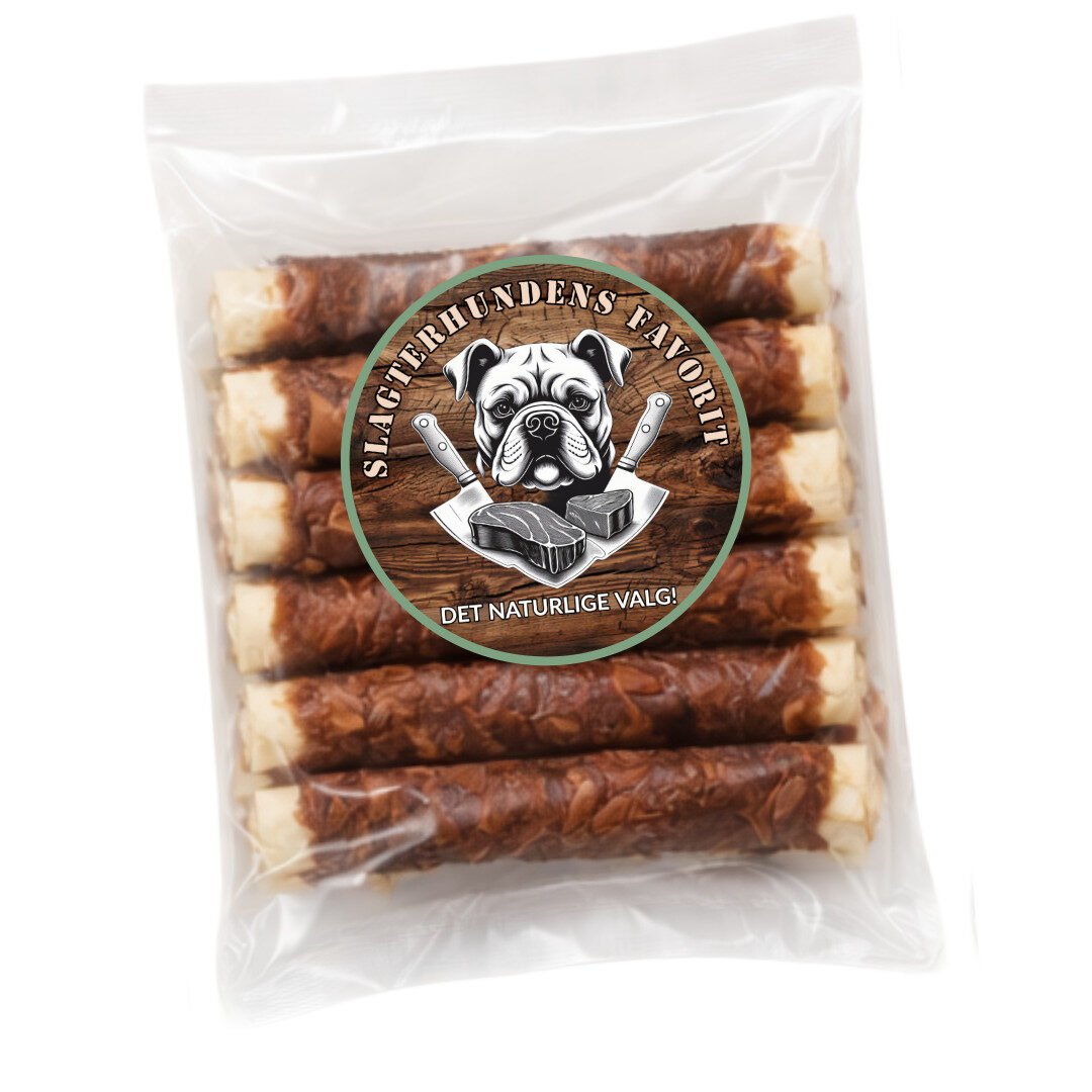 Forkæl din hund med en velsmagende tyggerulle, der kombinerer ro, smag og kvalitet.