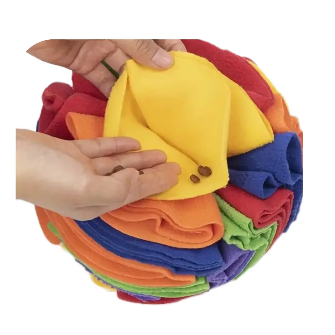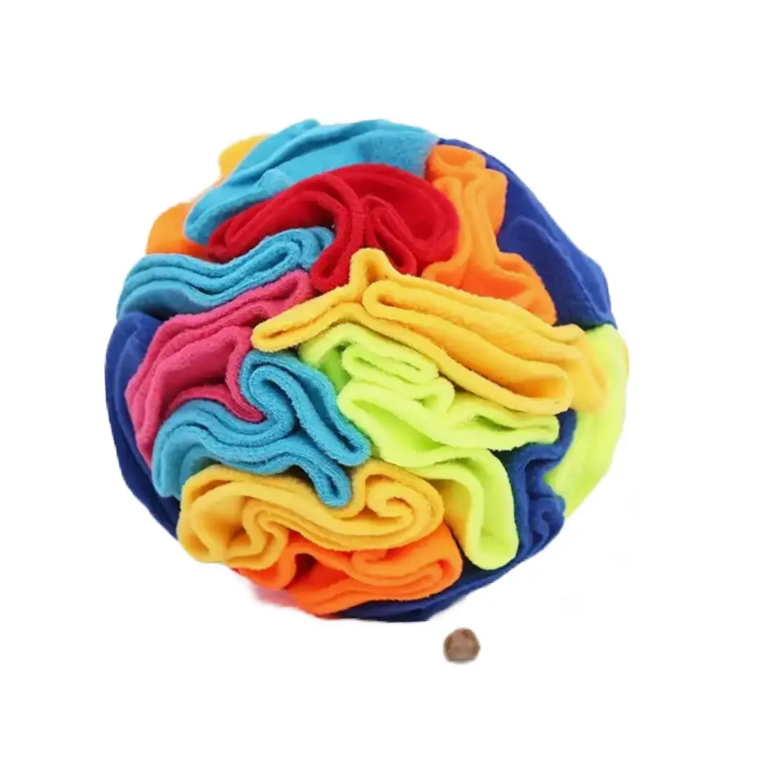 Gør leg og aktivering til en del af din hunds daglige rutine med denne multifarvede snusebold af blød filt – et legetøj, der både udfordrer og underholder!