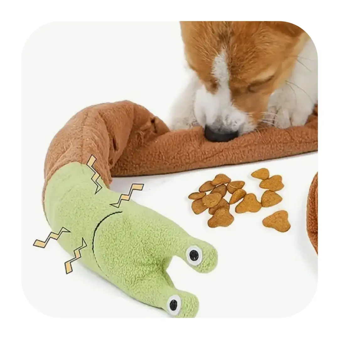 Søren Snegl er et interaktivt og sjovt aktiveringslegetøj, der motiverer din hund til at bruge både hjerne og snude for at finde gemte godbidder. Rul sneglehuset ud, gem lækkerier i lommerne, og rul det sammen igen – nu er det op til din hund at løse opgaven. Perfekt til hunde i alle aldre og størrelser, dette legetøj giver sund mental stimulering og holder din hund beskæftiget. Ideel til daglig aktivering og alene-hjemme-træning.