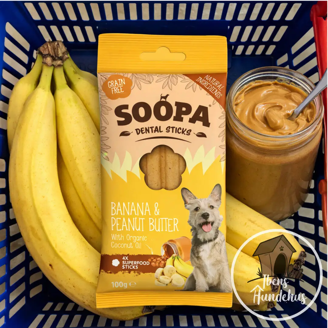 Soopa Sticks Banan & Peanut Butter – Veganske Dental Sticks til Sund Mundhygiejne