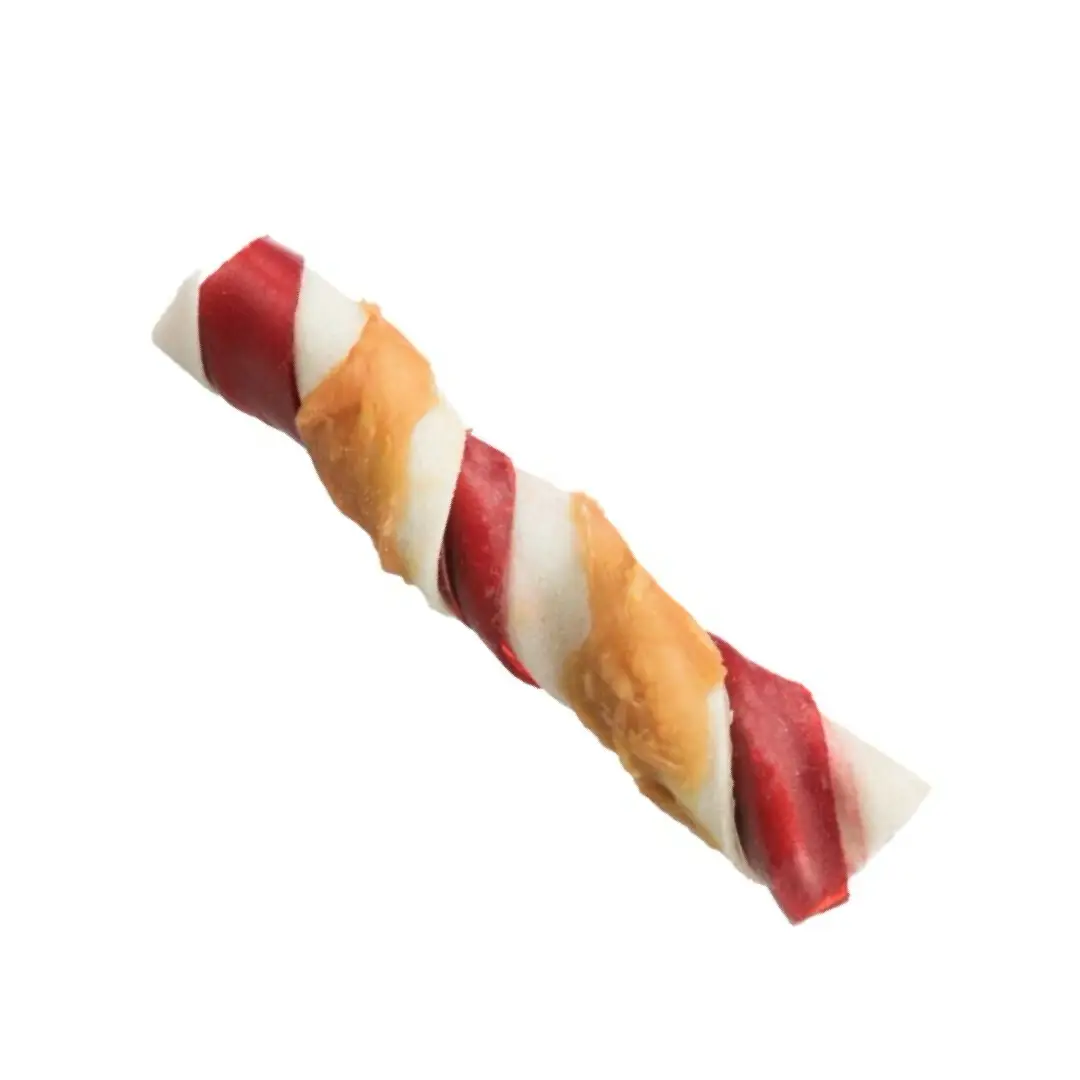 - Sammensætning: Råhud, kyllingebryst (16%), majsstivelse, glycerin, ærteprotein, mineraler.