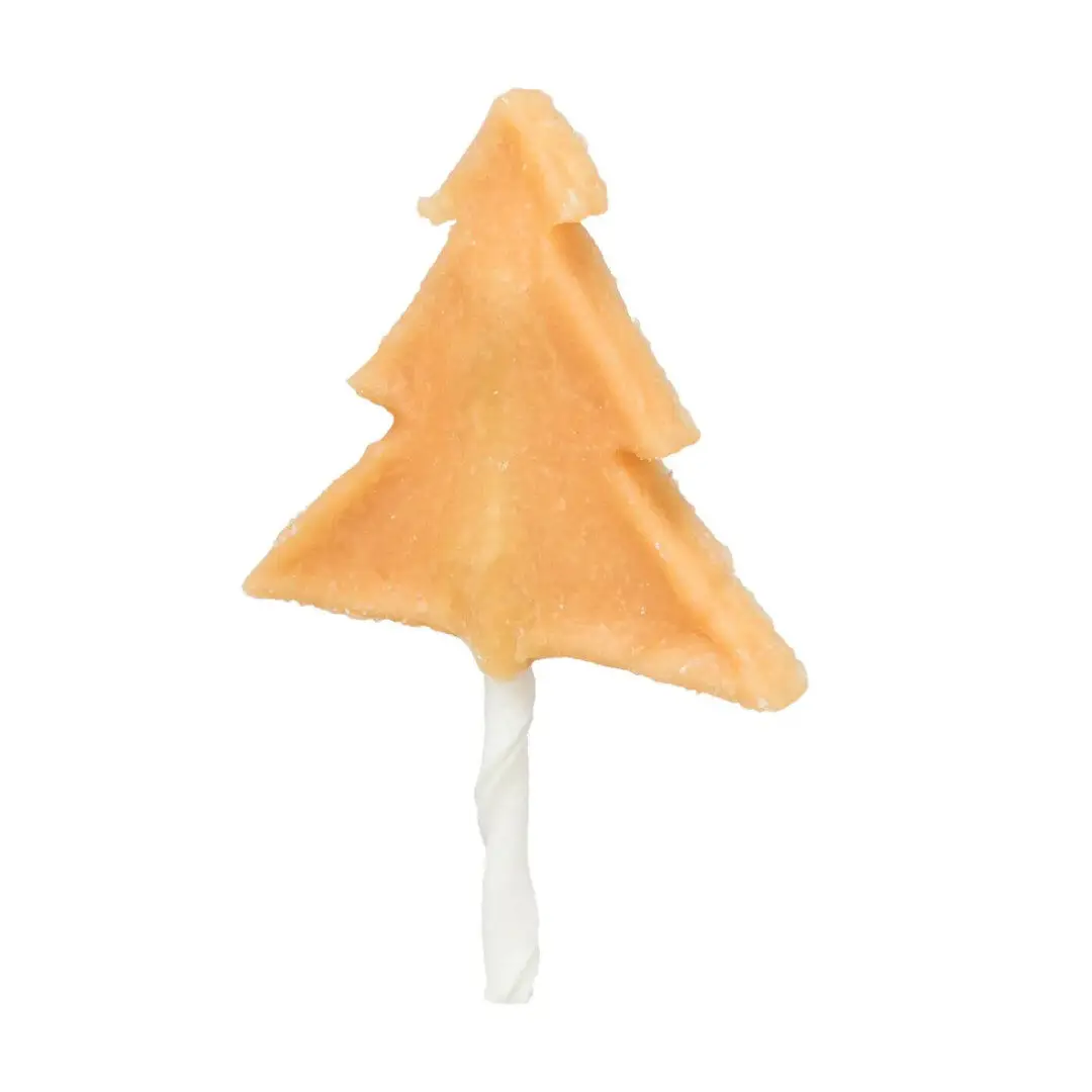 Trixie Tyggeben Juletræ Med Kylling er en dekorativ julesnack formet som et lille juletræ, der kombinerer saftig kylling med en fast kerne af råhud. Den stærke duft og bløde smag af kylling gør denne snack oplagt til hunde, der elsker et naturligt og aromatisk udtryk. Selvom formen er inspireret af julen, er den så populær blandt hunde, at den uden problemer kan serveres hele året som en lille bonus i hverdagen.