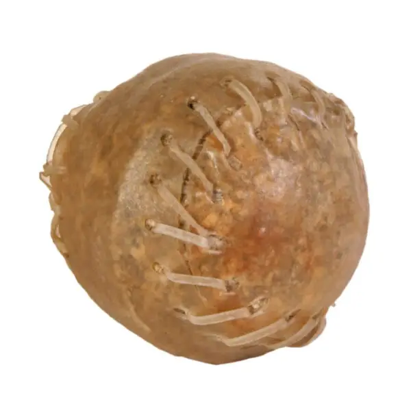 Denne klassiske tyggebold er fremstillet af tørret råhud af høj kvalitet og et fast fyld, der gør den ekstra holdbar. Struktur og tæthed giver hunden en naturlig tyggeoplevelse, hvor den virkelig får brugt kæbemusklerne. Den runde form ruller og drejer under brug, hvilket forlænger aktiviteten og skaber variation i tygningen.