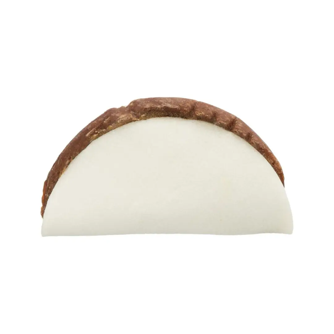 Forkæl din hund med en sjov og lækker snack formet som en tacoskal, lavet af robust oksehud fyldt med smagfuldt tørret kyllingekød. Med 61% protein og kun 3% fedt er denne glutenfri snack en sund og velsmagende belønning, der passer til hunde i alle størrelser.