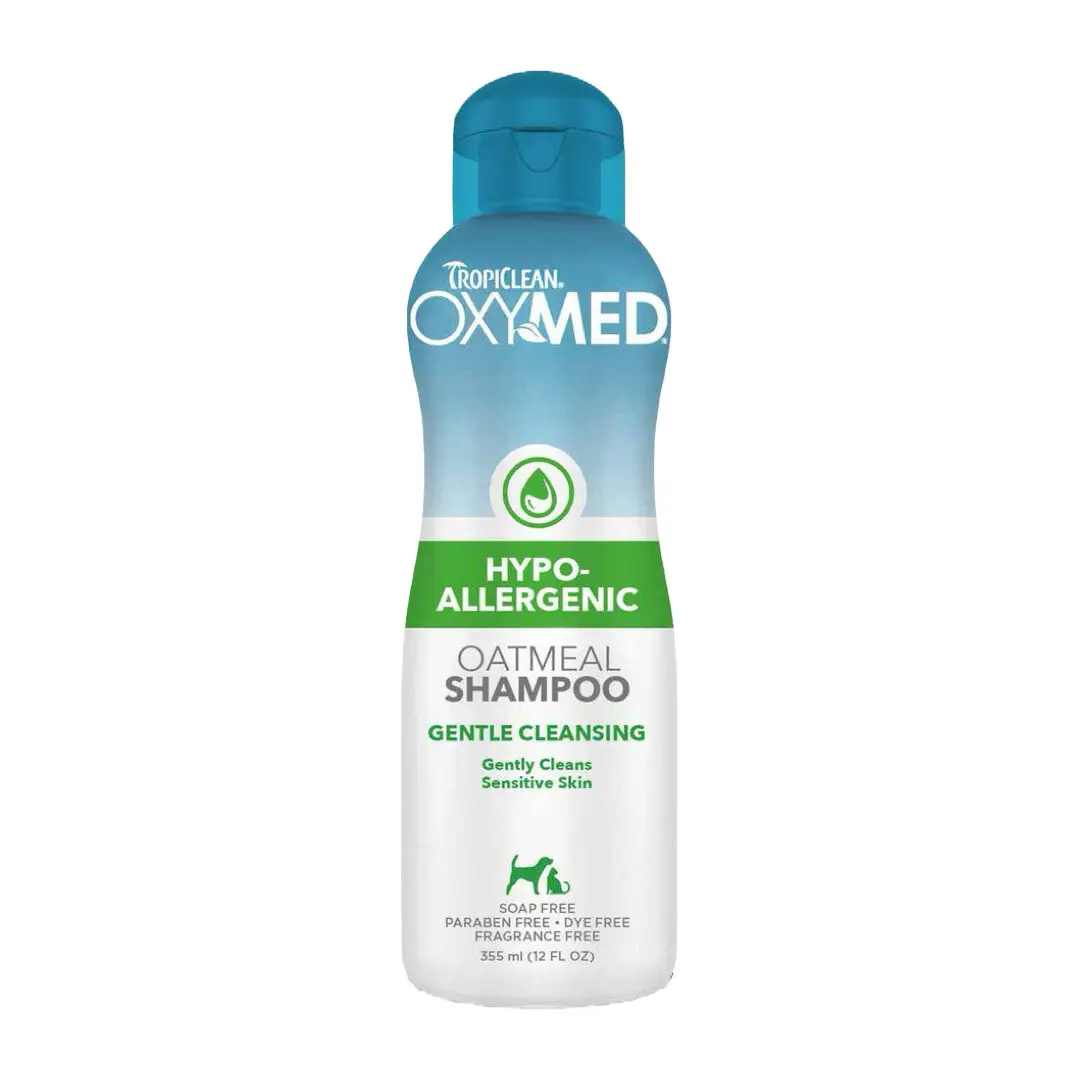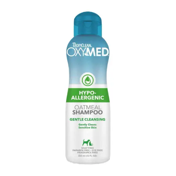 Hunde med allergi eller følsom hud fortjener en shampoo, der er både skånsom og effektiv. Tropiclean OxyMed Hypoallergenic Oatmeal Shampoo er udviklet specielt til kæledyr med sart hud og indeholder en mild kokosbaseret rens, der renser nænsomt uden at udtørre. Denne hypoallergene og tårefri formel er ideel til både hvalpe og voksne hunde, der har brug for en ekstra mild pleje.